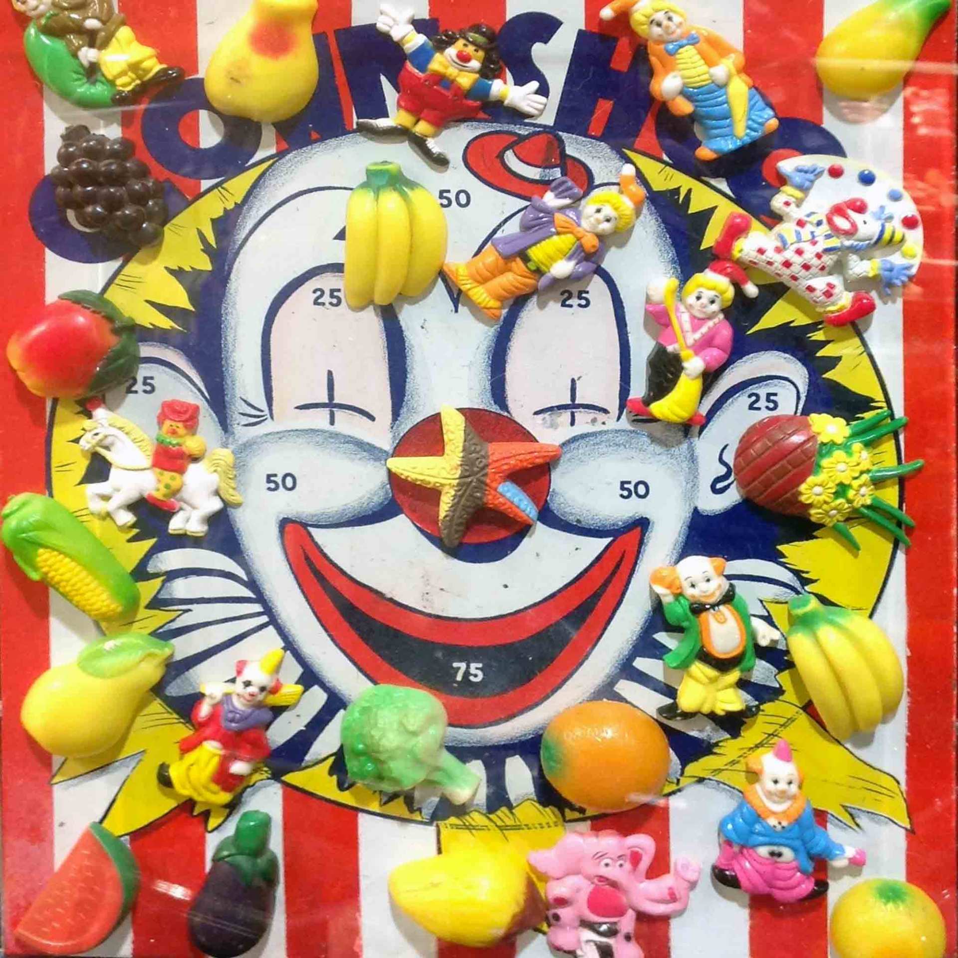 Un bottone , più un bottone , più un bottone e un fiocchetto , più una fish di bakelite più un cerchio , più colore